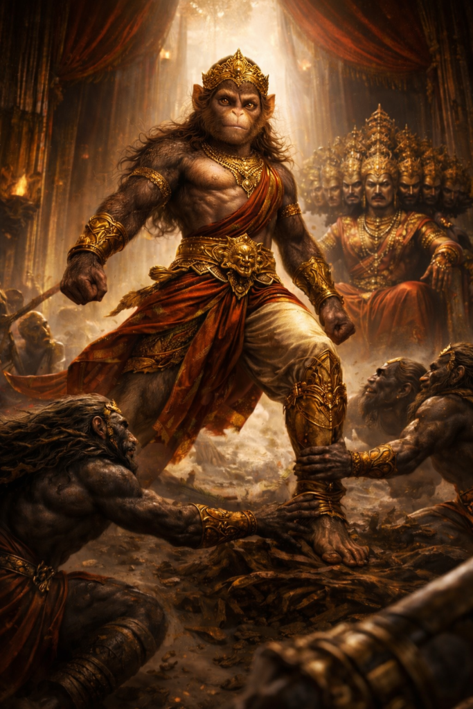 रावण की सभा में — अहंकार नहीं, मर्यादा